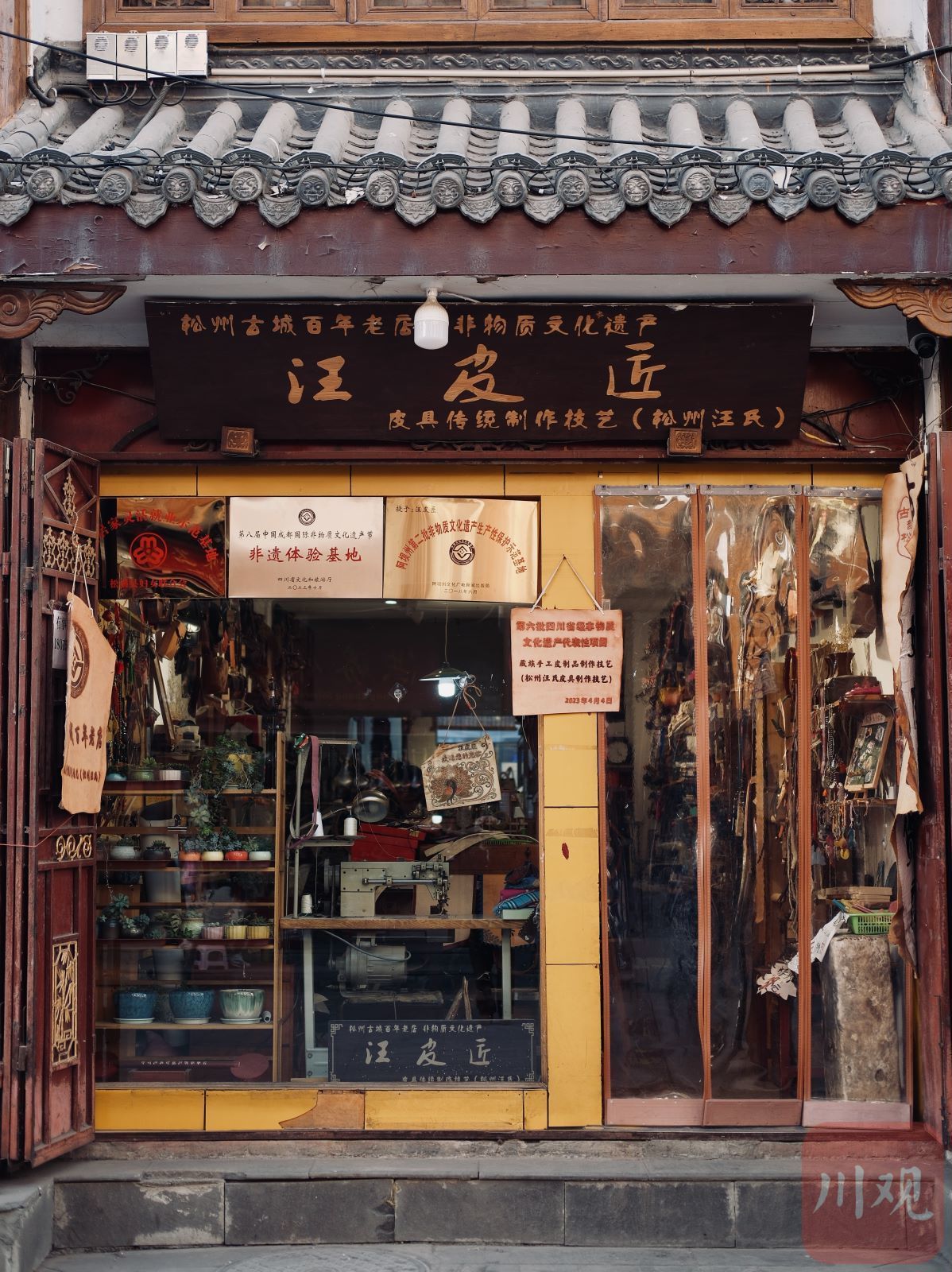 松潘古城距今已有2300多年,历史上藏、羌、回、汉等多民族在此交融共生,全盛时期,古城内曾有60多家皮具店,而如今,只剩汪孝凌开的“汪皮匠”一家。