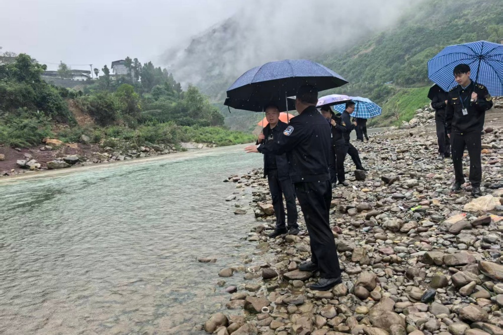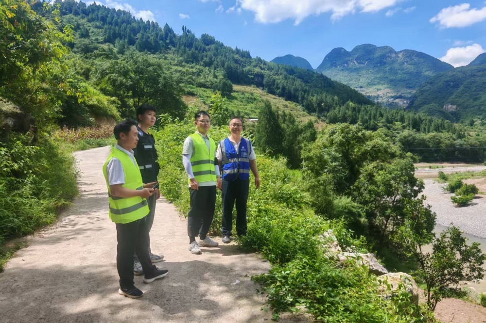 水潦彝族乡政府工作人员和贵州团结乡的工作人员联合开展巡河工作(叙永县水潦彝族乡政府供图)