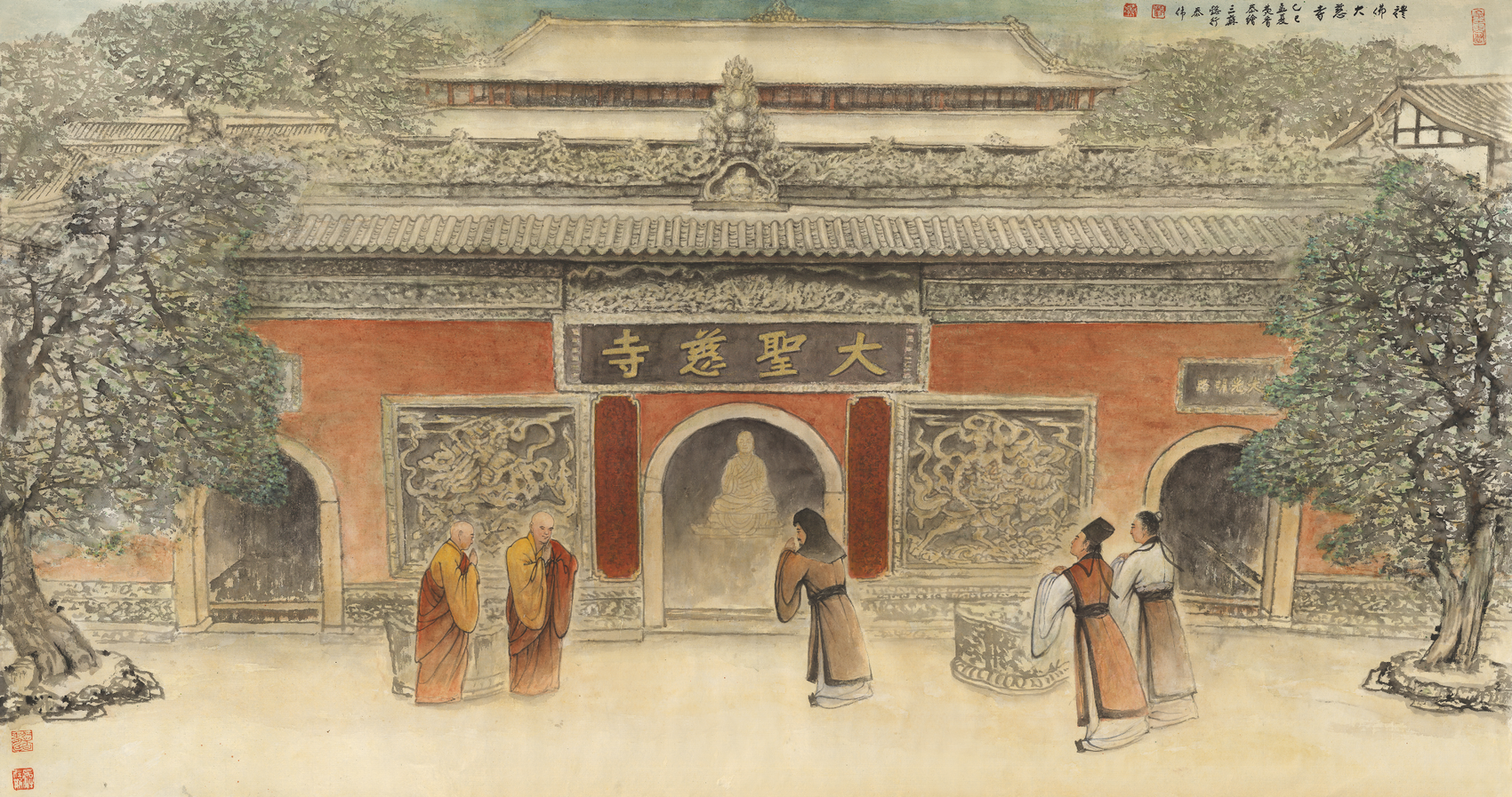 成都,既是三苏走出眉山、迈向天下的“第一站”,也是他们魂牵梦绕的“归心处”。展览中,多件作品生动再现了这段渊源:蒋才《忆初识张方平》勾勒出益州知州张方平对三苏的知遇提携之恩,徐利明所书《书杜君懿藏诸葛笔》见证了成都杜氏与三苏家族的世交雅事,侯开嘉笔下的苏辙诗文彰显了苏轼与吕陶“为民请命、患难与共”的挚友深情,谢泰伟《成都大慈寺》与杨建英《赠释迦佛画像》则定格了苏轼与宝月大师的方外情谊。这些作品与成都的历史肌理相映成趣,让观众直观感受“三苏巴蜀文化圈”中成都不可或缺的重要地位。