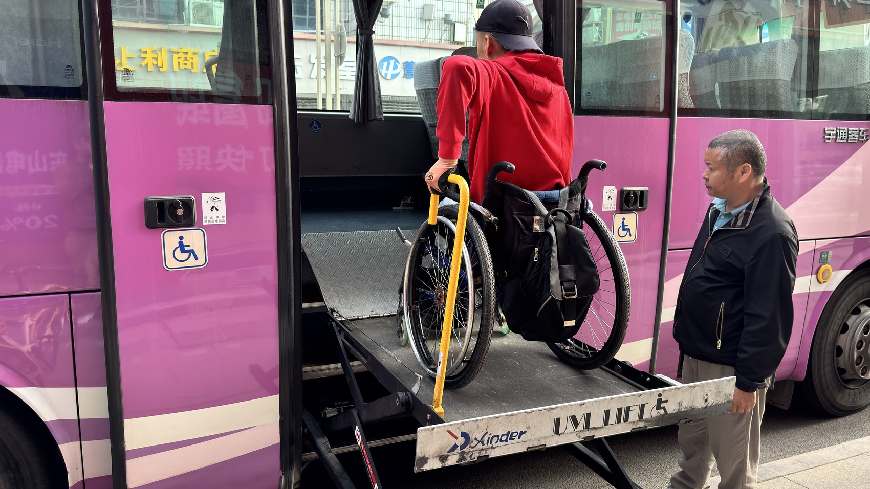 残疾人游客正在体验无障碍大巴(四川省残疾人无障碍环境建设促进会供图)