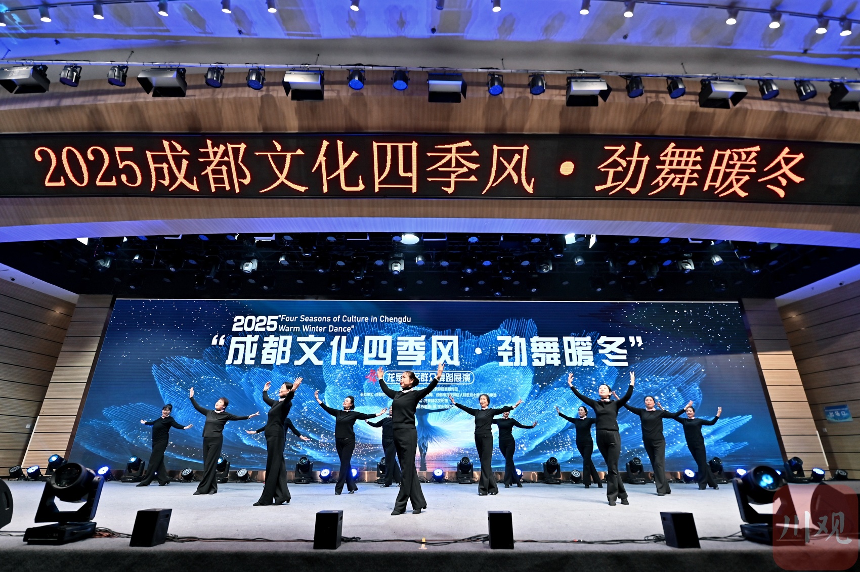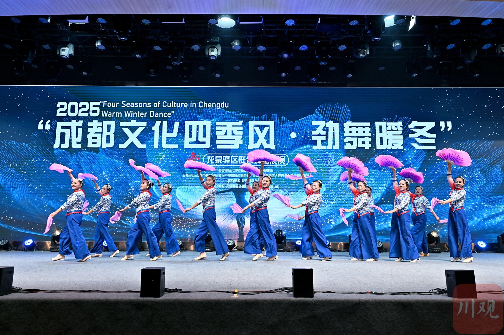 蓝白绣纹短褂配阔腿裤,粉扇在指尖旋作一团柔雾,十几位舞者踩着鼓点舒展腰肢,台下叫好声瞬间漫开……12月9日下午,2025年“成都文化四季风·劲舞暖冬”群众舞蹈区级集中展演在十陵街道举行。本次活动由成都经开区(龙泉驿区)文化广电体育和旅游局、十陵街道办事处联合主办,龙泉驿区文化馆承办,集中展示了全区群众舞蹈的成果,并以创新的赛制形式,为冬日注入鲜活的艺术活力。