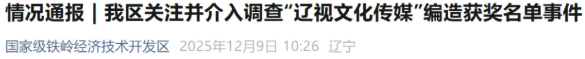 “辽视文化传媒”账号所属的辽宁视界文化影视传媒有限公司是驻我辖区内的企业。经初步调查,该企业在其主办的“2024多彩中国少年朗诵艺术家展演”活动中,为扩大影响,编造部分获奖名单,并在公司新媒体平台发布。