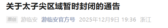 为进一步保障太子尖区域的生态环境和游览安全,将提升安全管理措施,改造后将实施身份证实名登山、视频巡查、无人机执法等,提升改造期间将实行临时封闭管理,暂停对外开放,具体开放时间另行通知。