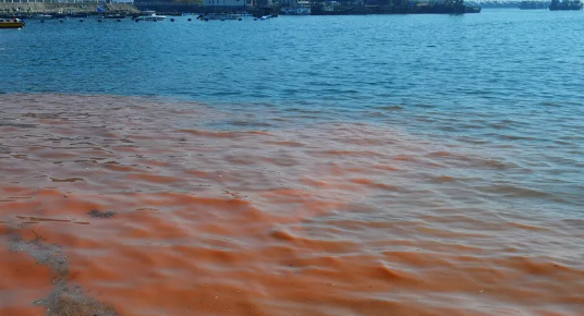 请勿在出现水色异常的海域进行捕捞、下水等活动。