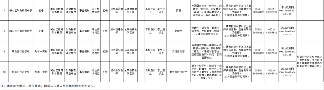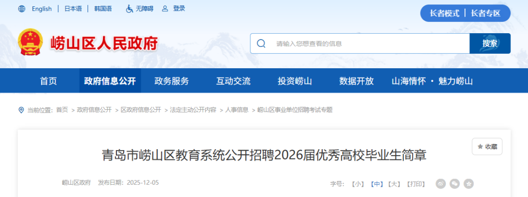 青岛市崂山区教育系统公开招聘2026届优秀高校毕业生简章