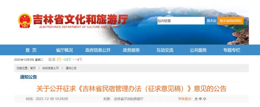原文标题:关于公开征求《吉林省民宿管理办法(征求意见稿)》意见的公告
