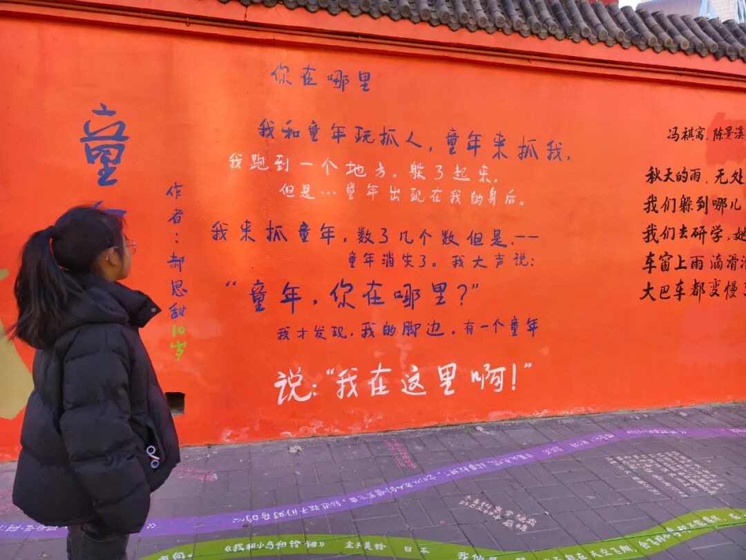 在这条街巷上,共采用了诗歌、句子近千首(句),其中大多数来自孩子们——北京十一学校丰台小学的孩子们。
