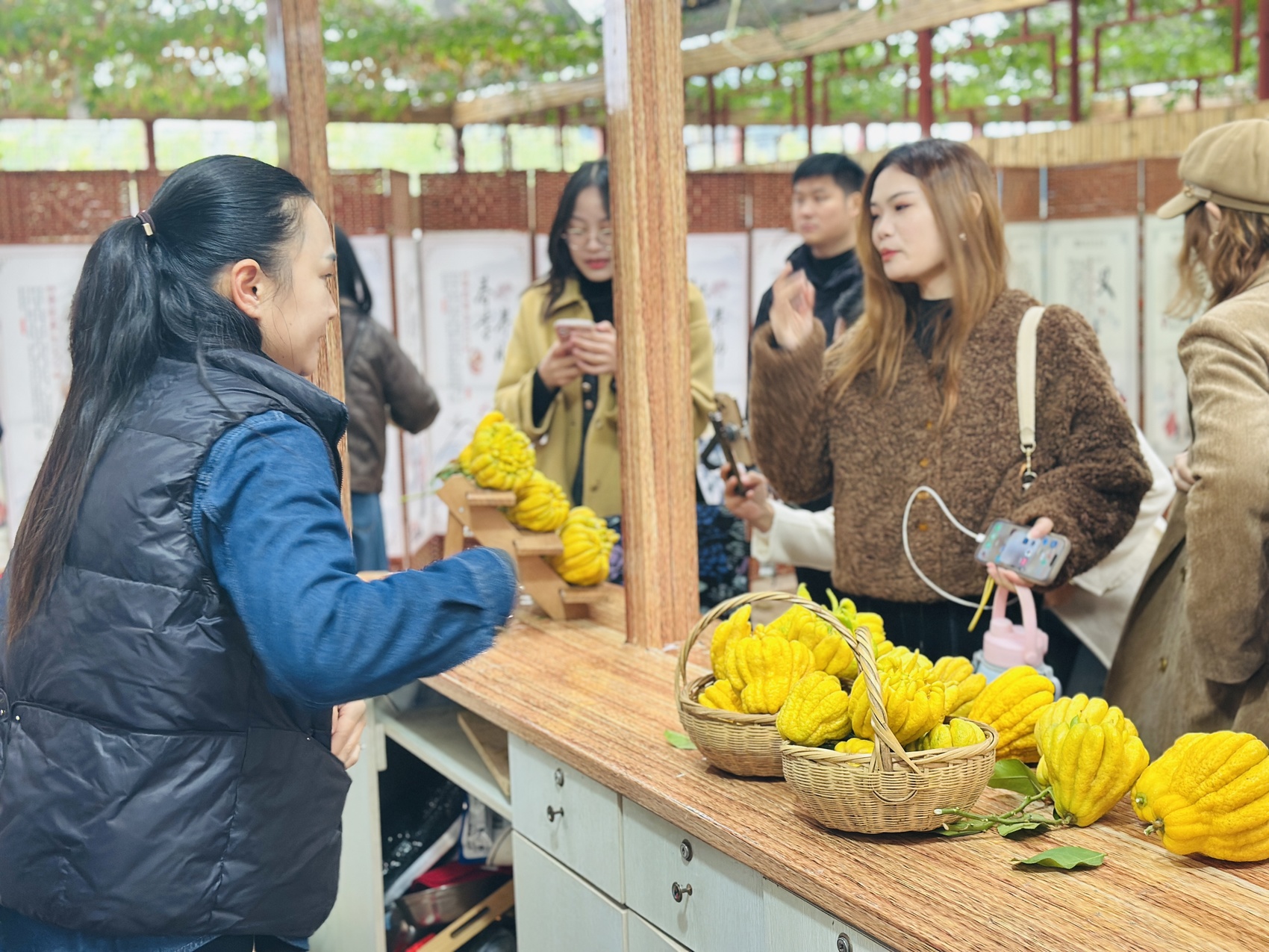 一踏入合江县白沙镇忠孝佛手园,400多亩佛手种植基地绿意盎然,园区负责人胡路生热情地向博主们介绍:“佛手兼具药用、食用、观赏多重价值,我们深挖其醒脑安神的功效价值与吉祥安康的寓意,走出了一二三产业融合的新路子。”据悉,佛手四季开花、三批结果,目前已形成药用、食用、观赏(水培/干摆)三大产品系列,其中观赏类产品占比从去年的10%提升至今年近20%,远销云南、广州、浙江等地。