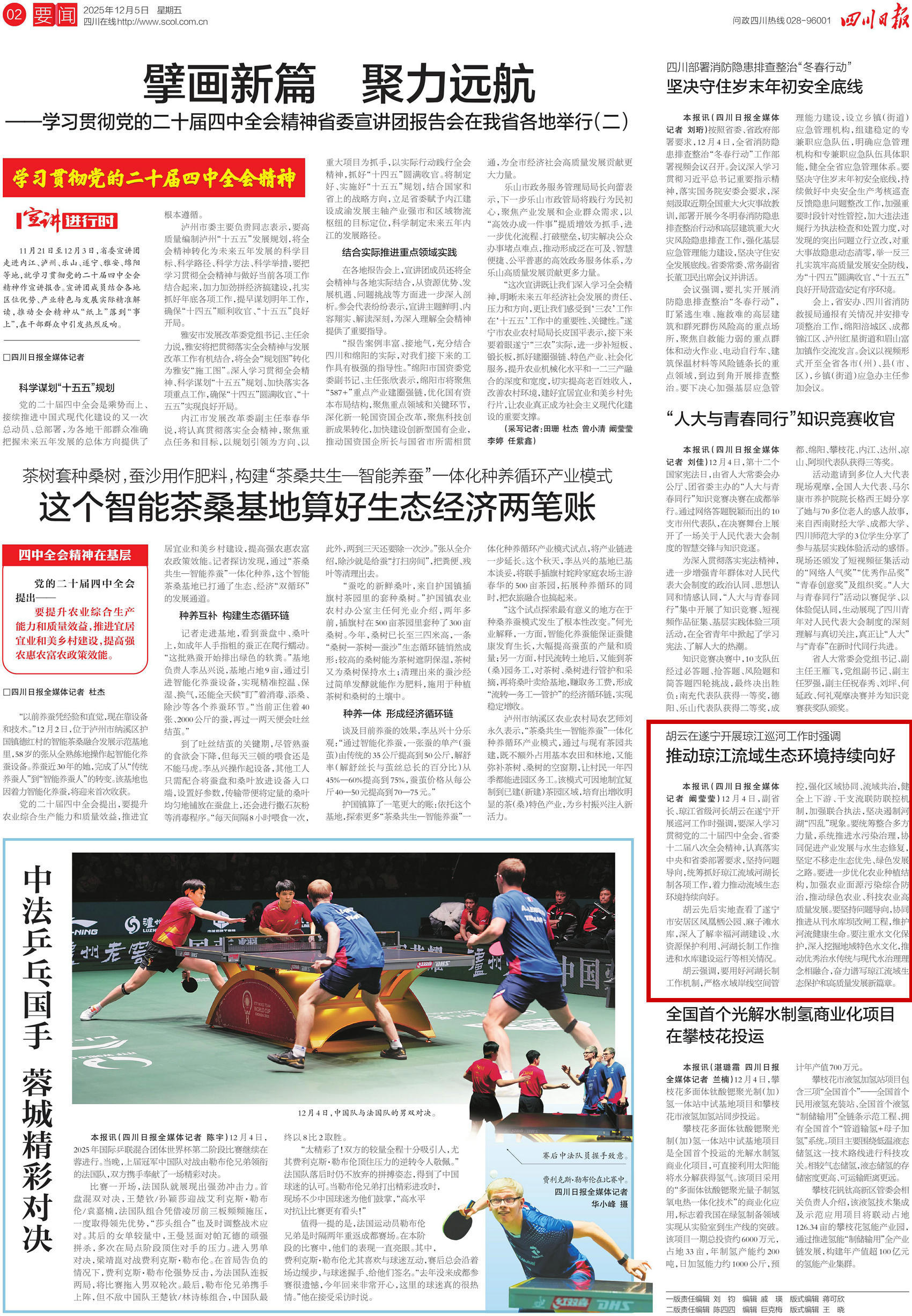 12月4日,副省长、琼江省级河长胡云在遂宁开展巡河工作时强调,要深入学习贯彻党的二十届四中全会、省委十二届八次全会精神,认真落实中央和省委部署要求,坚持问题导向,统筹抓好琼江流域河湖长制各项工作,着力推动流域生态环境持续向好。