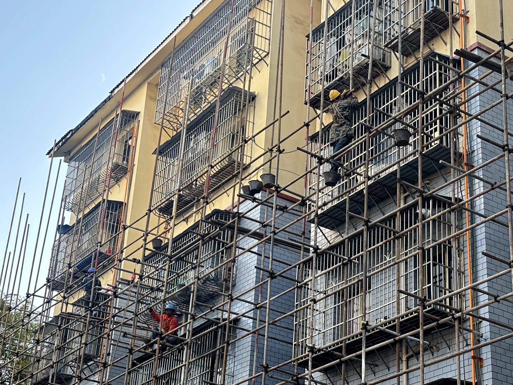 近日,在前锋区龙塘街道森林锦绣小区施工现场,工人头戴安全帽,绑扎钢筋、铺设管道、翻新墙面。“以前总盼着小区改造,现在外墙新了、管道换了,心里踏实多了。”68岁的小区居民周大爷说。该小区因建成年代久远,面临外墙漏水、管网堵塞、休闲设施匮乏等问题。通过一系列有条不紊的改造,这个老旧小区正逐渐褪去“老态”,焕发崭新活力。