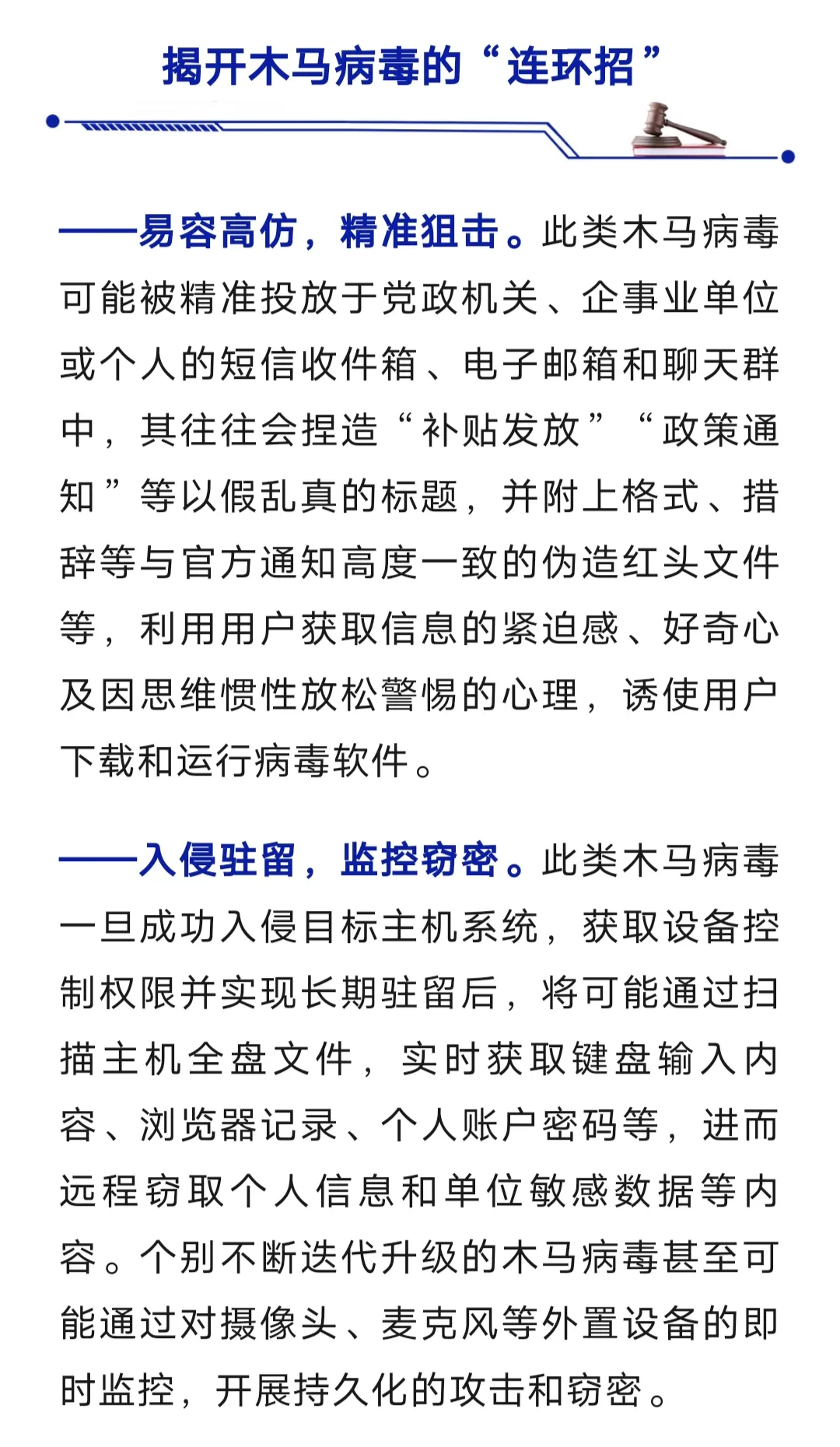 “本月考勤公示”“年度放假安排”“高温补贴发放声明”等办公类文件,是职场中常见的电子文档。但一些别有用心的人会将其伪装成含有窃密病毒的文件,易使有关单位人员放松警惕,一旦点击将对信息数据安全造成危害。