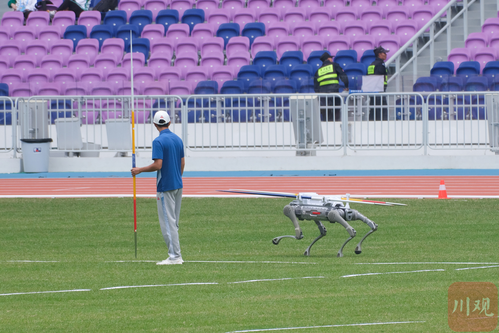这些机器狗可一次携带两支标枪,并在工作人员与运动员的保护区之外独立运行。场馆工作人员介绍,机器狗“上岗”后,标枪比赛的流程明显更加紧凑,场地周转时间缩短,运动员的节奏也更加连贯。过去依靠人工捡标枪,一场比赛下来,志愿者跑上百次并不夸张;如今,只需两名志愿者远程控制,便能完成全部回收任务。这不仅节约了人力,也进一步提升了工作与比赛效率。