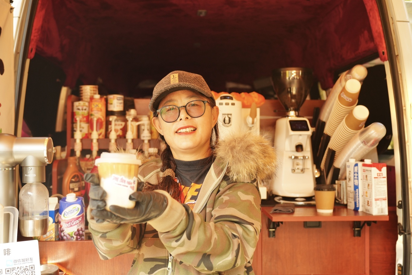 成都市民童燕红开着咖啡车来到仁和,在异木棉树下调制咖啡。她眼中的幸福,是顾客品尝咖啡时眼里的光亮,是以咖啡为媒分享生活、传递温暖。