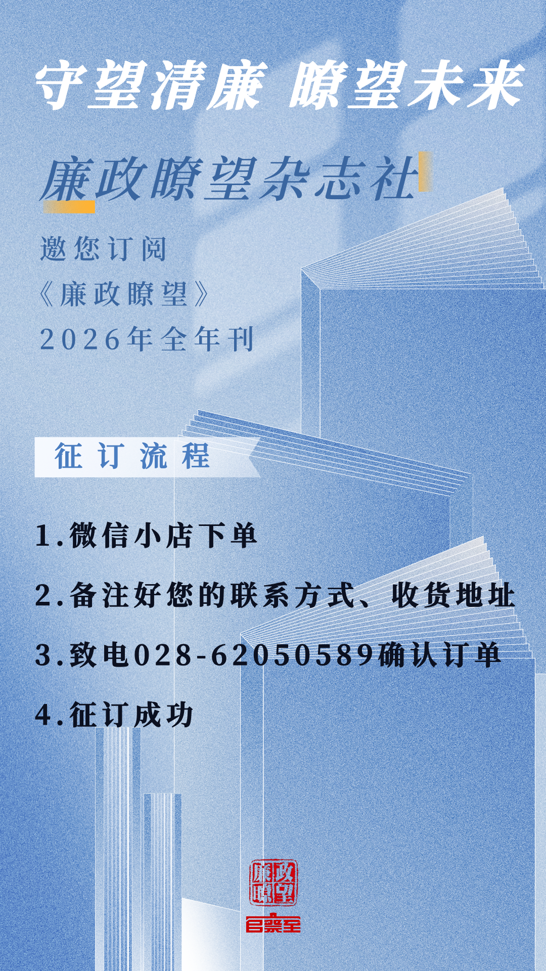 让《廉政瞭望》入驻您的案头,陪伴您的征程。