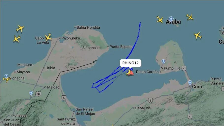 FlightRadar24等网站显示,美国战斗机留下的飞行轨迹表明,它们在委西北部的马拉开波湖北部上空飞行,飞越委内瑞拉湾水域,飞行路线位于委内瑞拉两个能源产业关键地区——苏利亚州的拉瓜希拉市和法尔孔州首府科罗市之间。