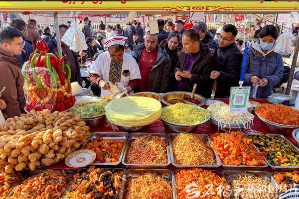 12月4日,在“喀什杯” 足球超级邀请赛场外的美食区烟火气正旺,观赛后的群众在美食区品尝美食。石榴云/新疆日报记者 约提克尔·尼加提 摄