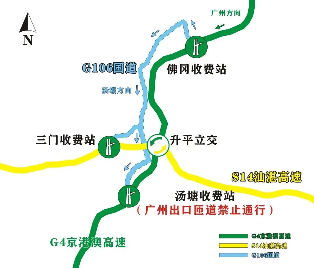 G4京港澳高速公路汤塘站C匝道(广州方向汤塘出口匝道)封闭。