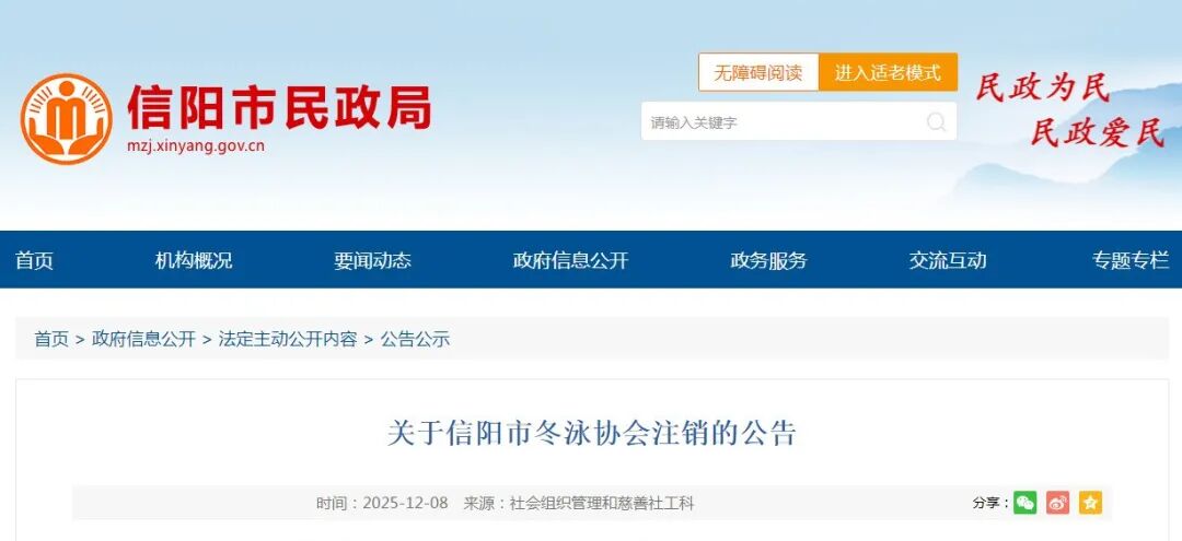 根据《社会团体登记管理条例》等有关规定,经审核,准予信阳市冬泳协会注销。