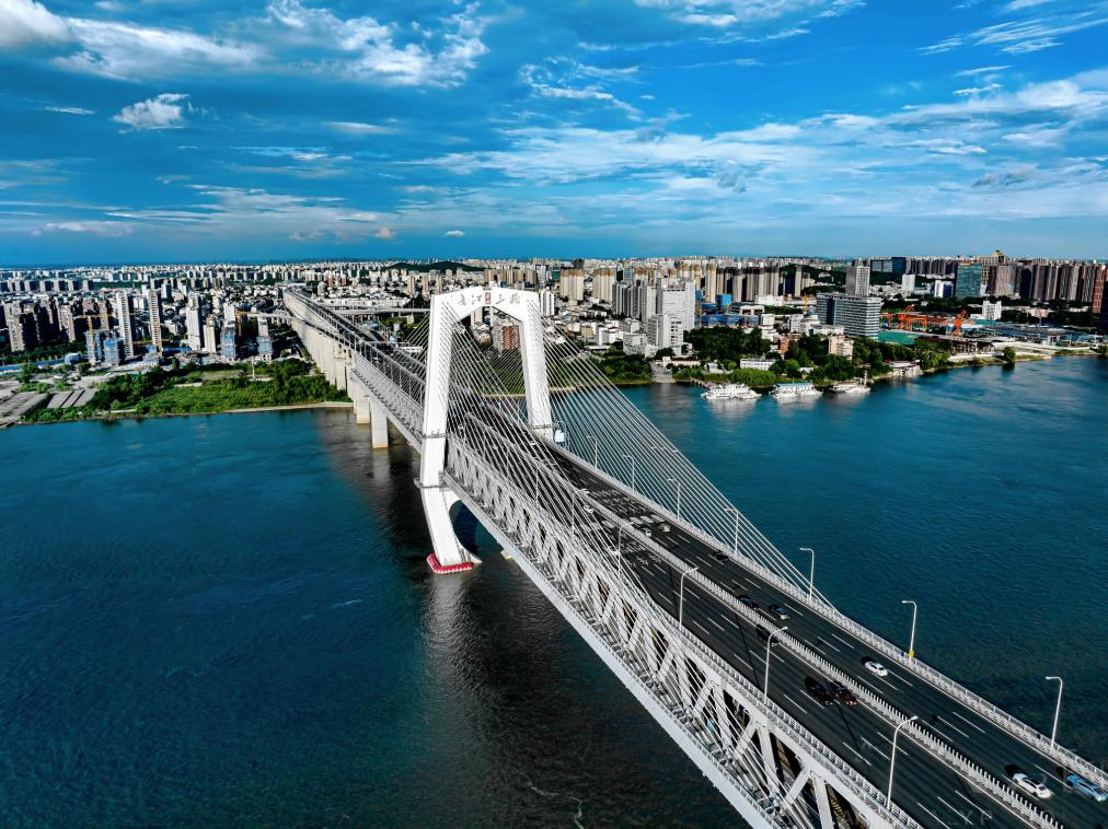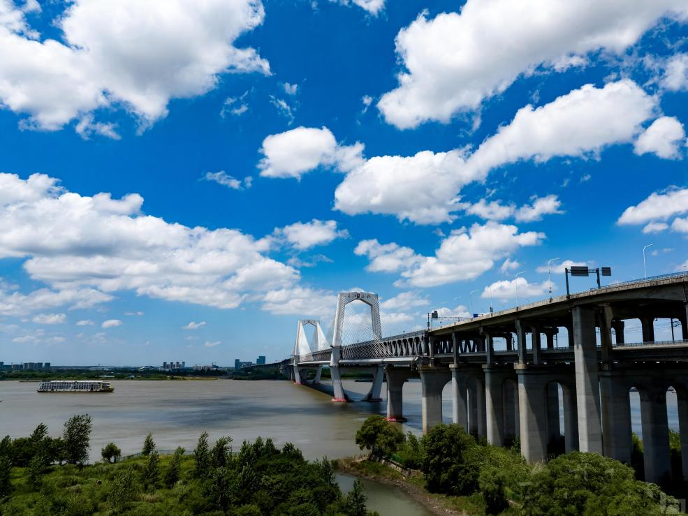 游船从芜湖启航,首先映入眼帘的便是芜湖长江大桥。作为一座公铁两用的过江通道,它凌空飞架,坚实的钢铁骨架在晴空下熠熠生辉,桥上列车飞驰、车流如织,生动展现着长江“黄金水道”的繁忙景象与磅礴活力。站在游船甲板凭栏远眺,现代大桥与两岸的城市轮廓相映成画。江风拂面间,既能体会到当代工程的宏伟,也能感受到大江东去的浩渺意境。
