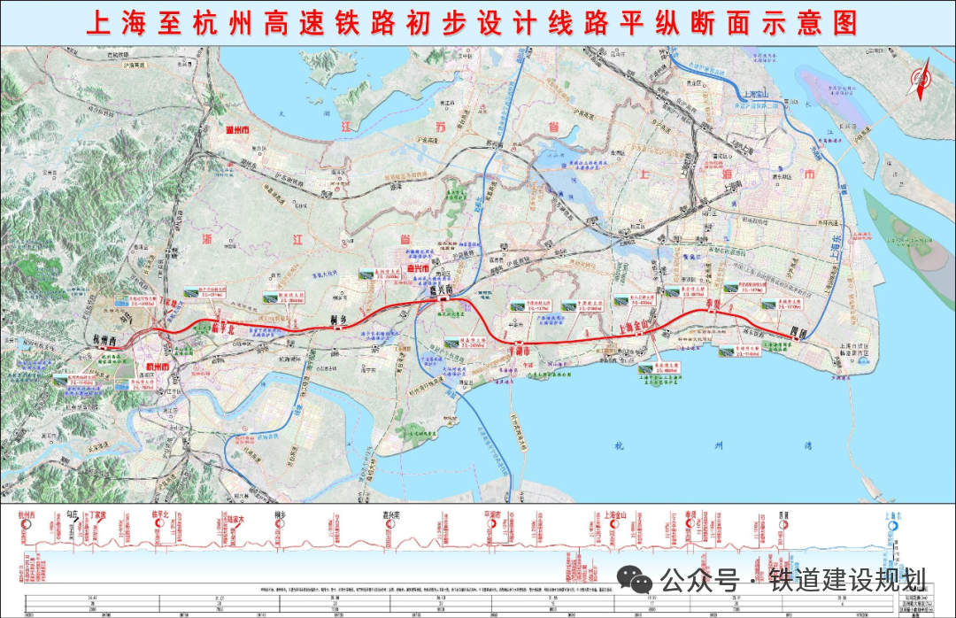 项目在上海枢纽四团站与沪通铁路二期连通引入上海东站,在杭州枢纽引入杭州西站,是继沪杭、沪苏湖高铁之后连接沪杭的第三条高铁客运通道。