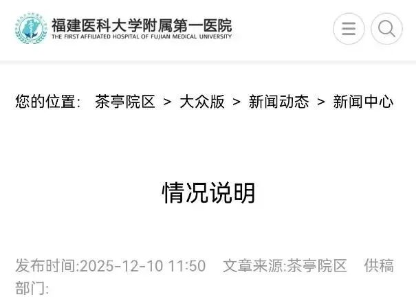12月10日,福建医科大学附属第一医院官网发布情况通报: