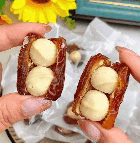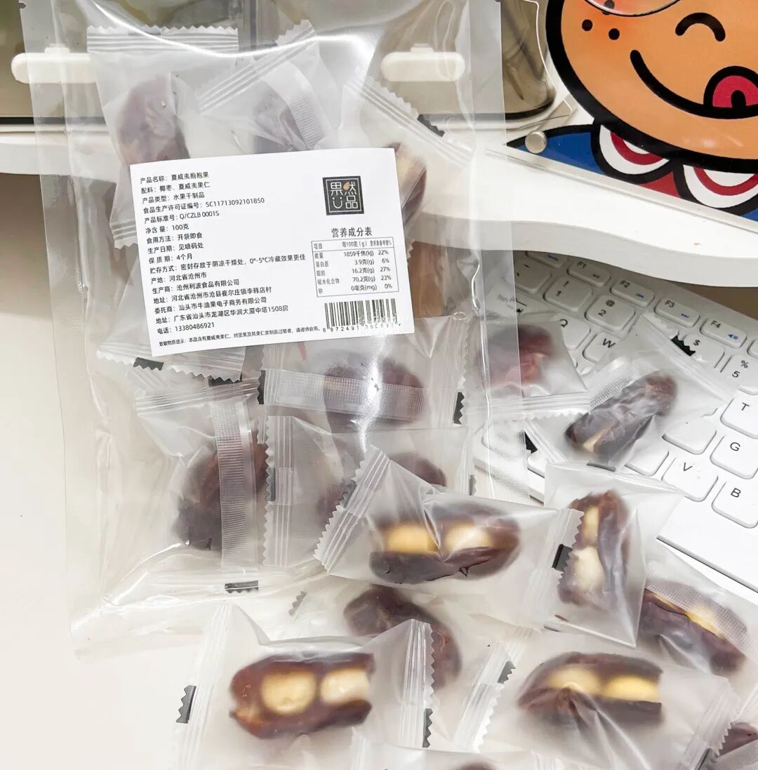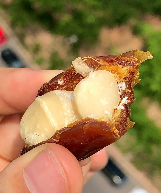 每一颗都特别完整,咬开能闻到超浓郁的奶香味,脆生生的口感和椰枣的软糯形成鲜明对比。