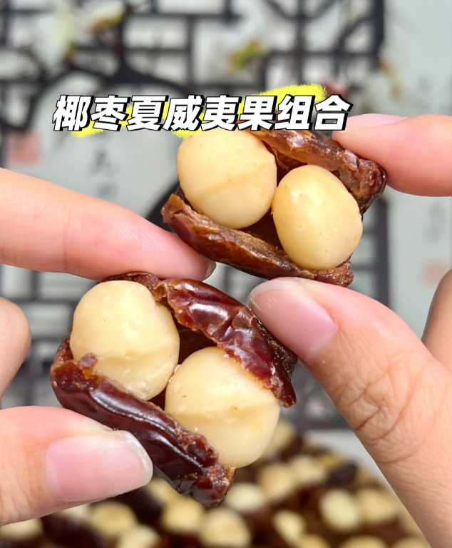 这个夏威夷抱抱果,椰枣裹着夏威夷果的组合!