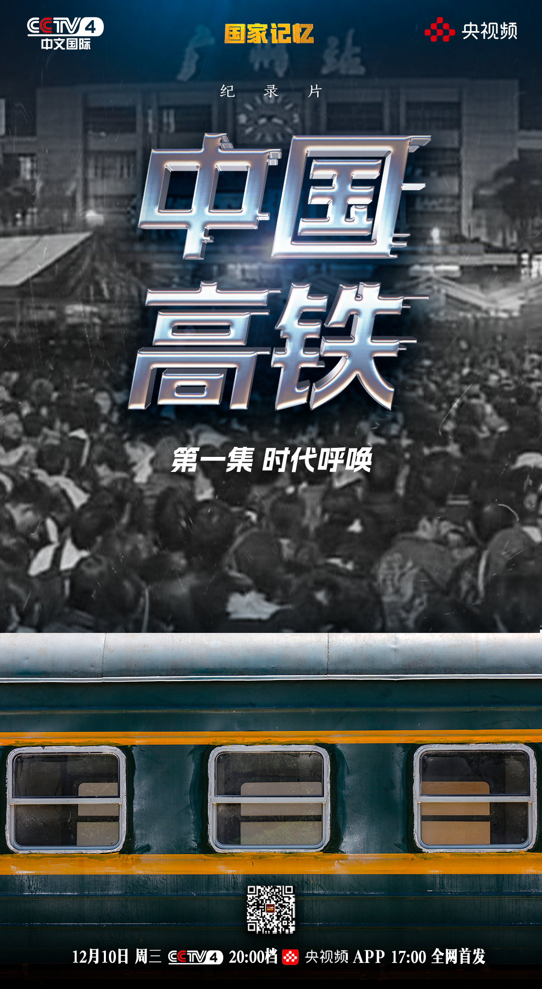今天20时,由中央广播电视总台华语环球节目中心、《中国交通年鉴》社、《人民铁道》报业有限公司联合摄制的7集大型电视纪录片《中国高铁》在CCTV-4频道《国家记忆》栏目首播。