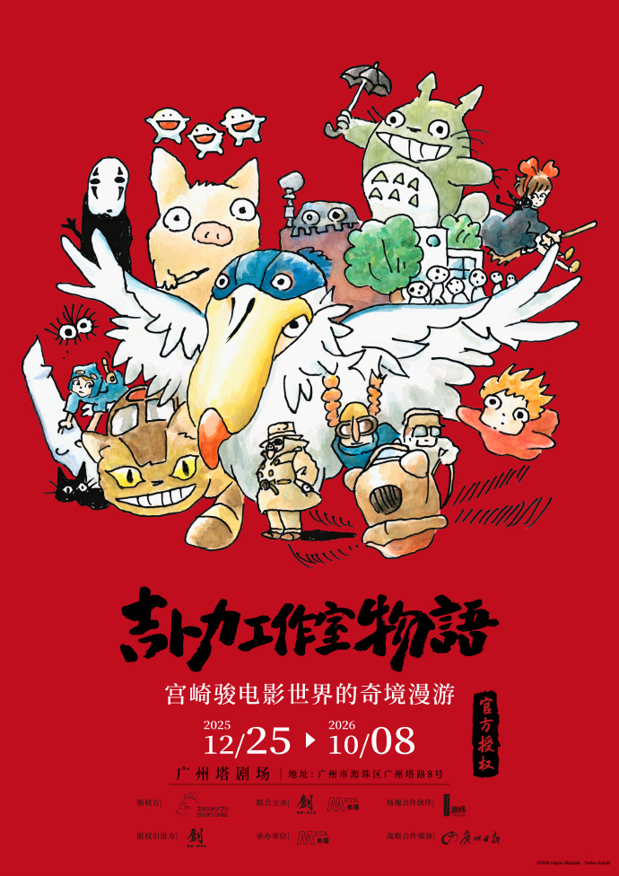 我们非常遗憾地通知大家,原定于2025年12月25日在广州塔剧场开幕的“吉卜力工作室物语·宫崎骏电影世界的奇境漫游”将延期举行。