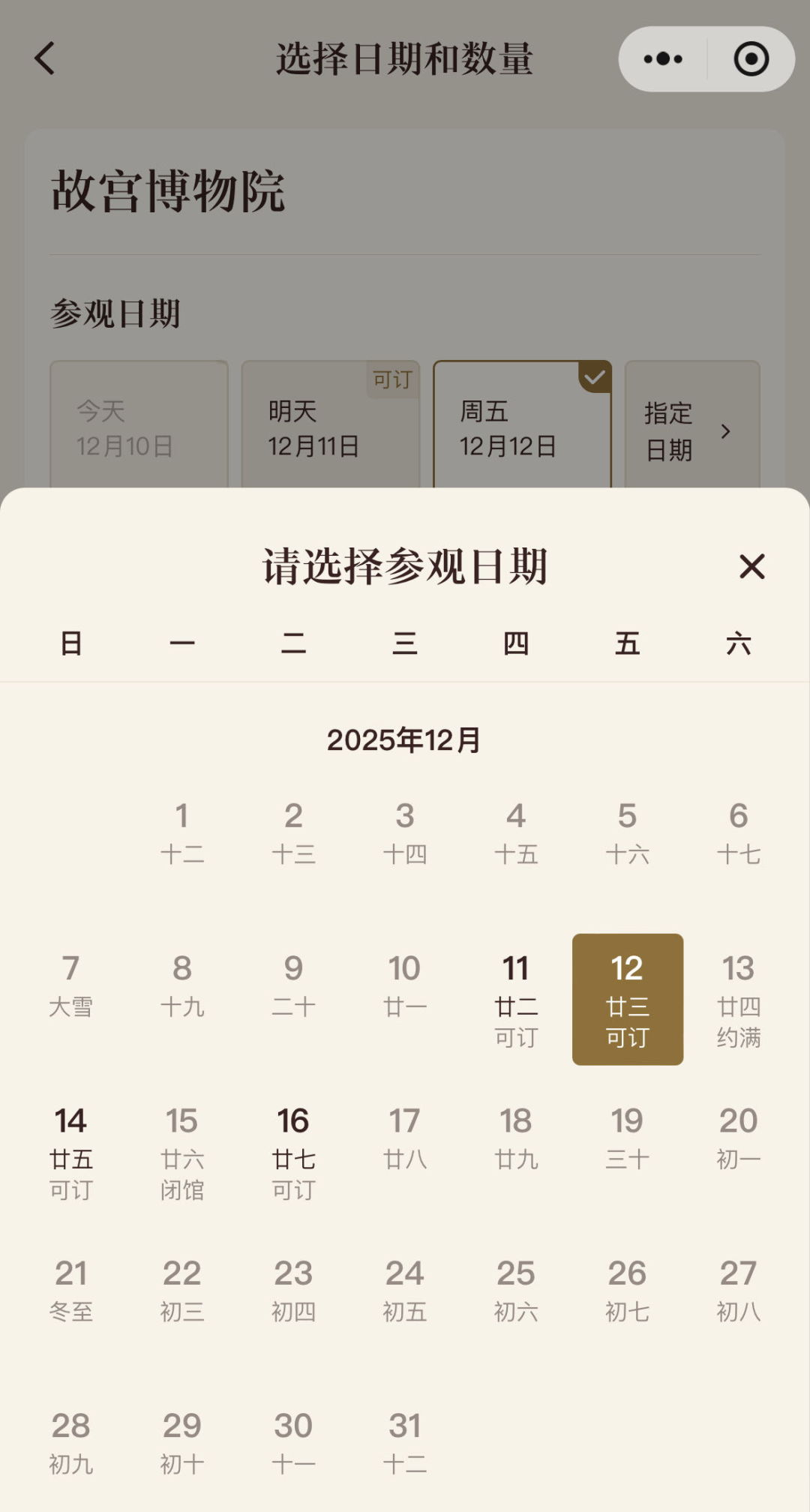 每逢下雪,故宫博物院门票便十分紧俏。记者查询故宫预约系统,周六(12月13日)故宫的门票已约满,周五(12日)、周日(14日)尚有余票。