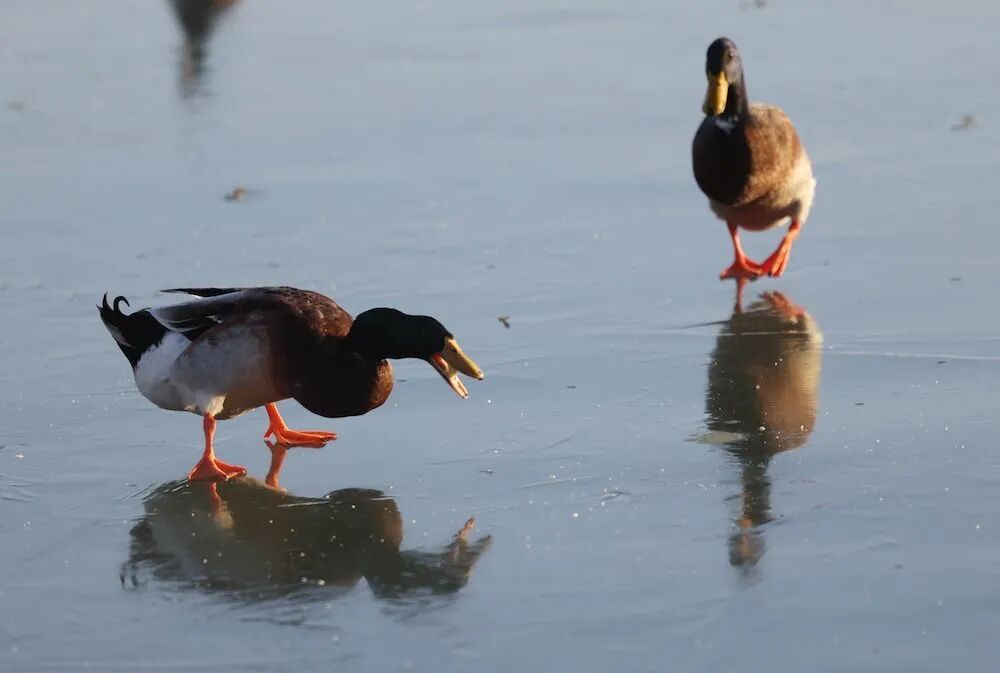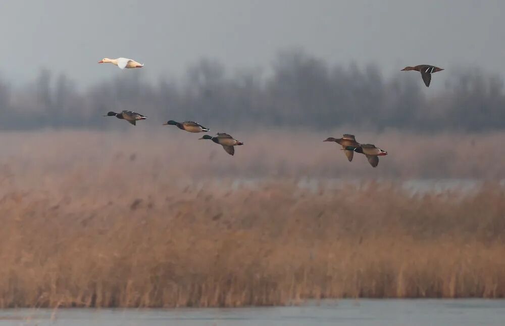▲2025年3月,官厅水库区域,家鸭与绿头鸭一同迁徙。
