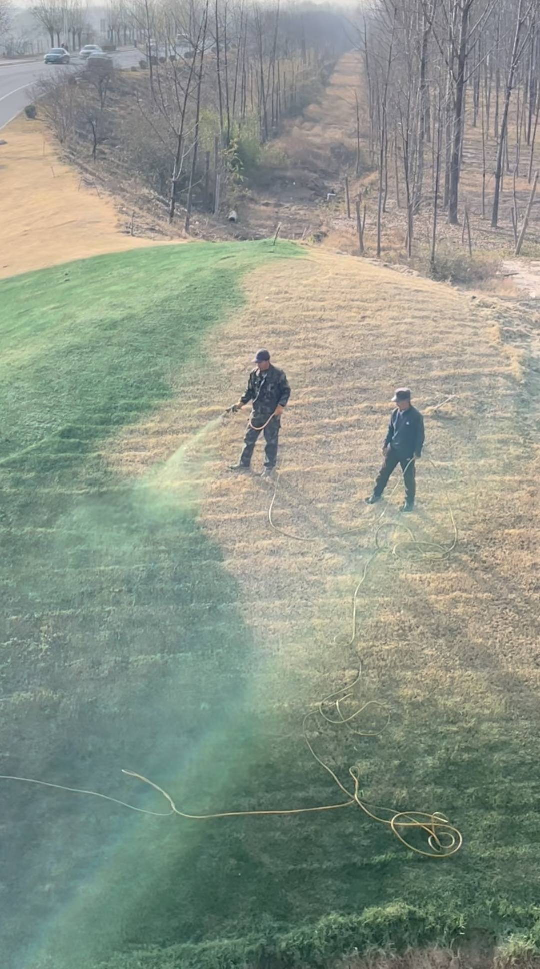 12月10日,陕西一网友拍摄了一段“绿化”的视频引发争议。视频中,两人拿着带有喷头的管子对着草坪喷洒绿色的液体,被喷洒的草坪成了亮眼的绿色,与未被喷洒部分的枯黄色形成对比。