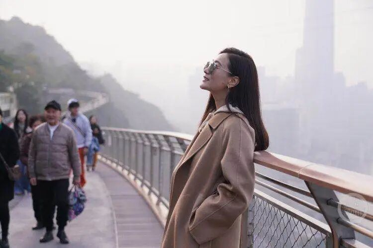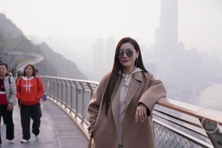 当天,谭晶的行程首站就锁定网红打卡地半山崖线鹅岭栈桥,无遮挡观江视角引得她连连举起手机拍照。