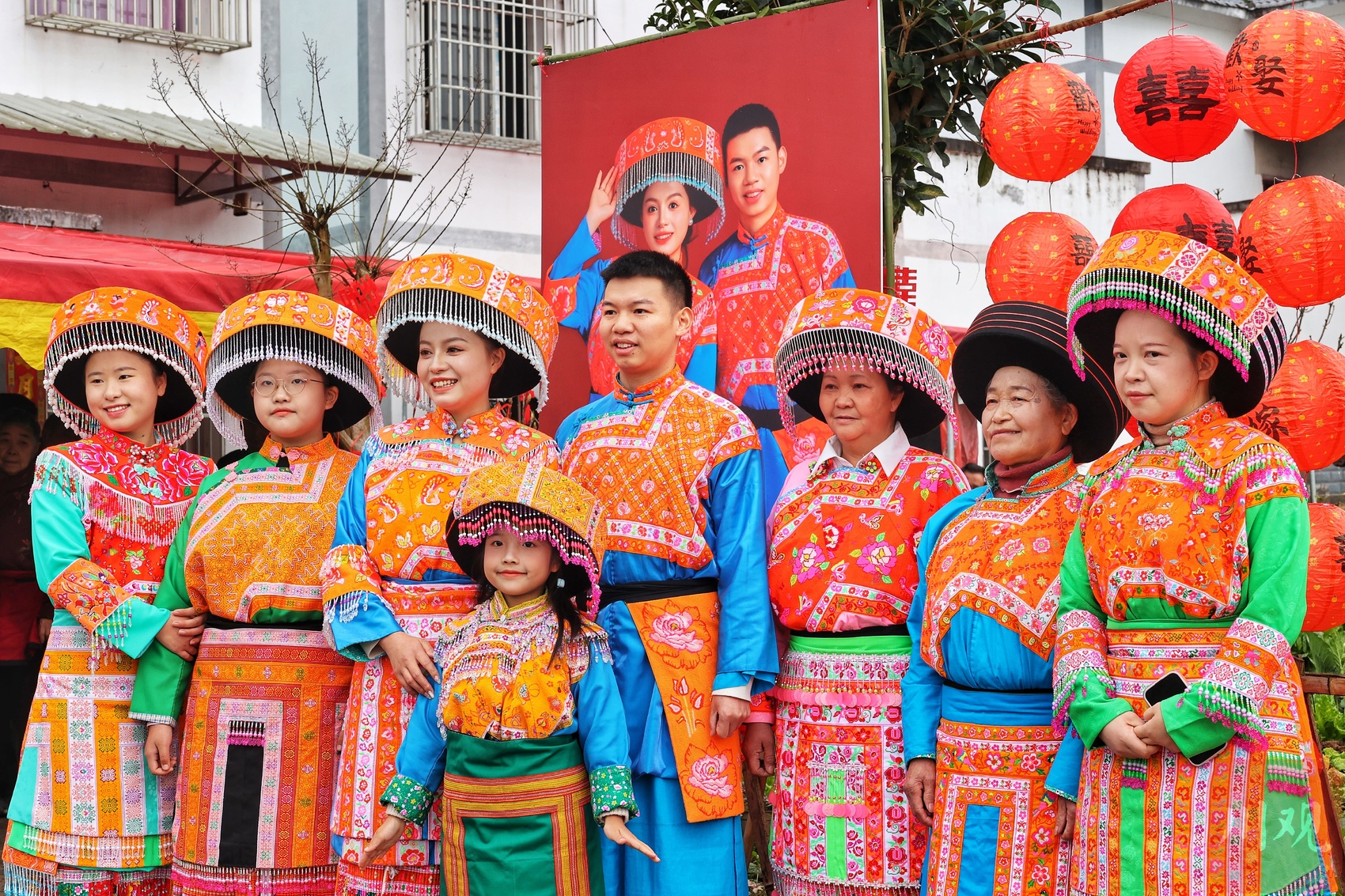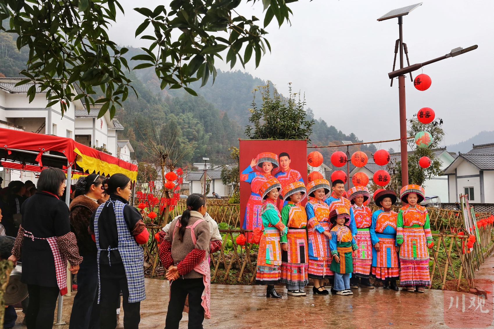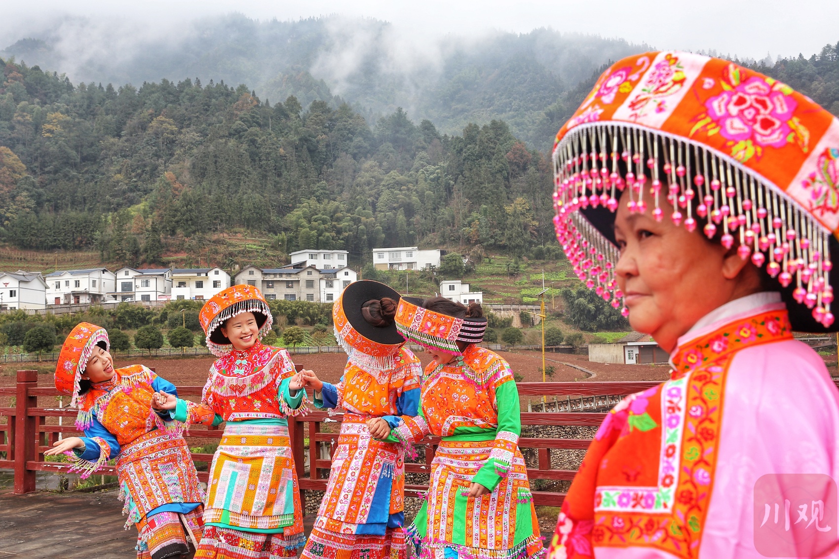 12月10日,泸州市古蔺县大寨苗族乡富民村,一户苗族人家张灯结彩,为即将出嫁的女儿陶倩筹备家宴。屋内亲朋齐聚,欢声笑语中,新娘陶倩换上母亲王秀英亲手缝制的苗绣嫁衣——一件以蝴蝶纹、孔雀、牡丹花等传统图案交相辉映的华服。