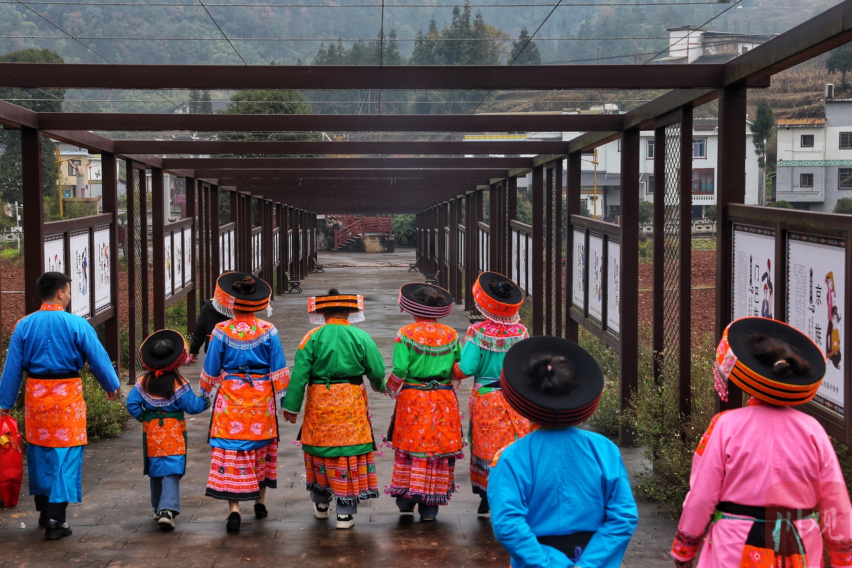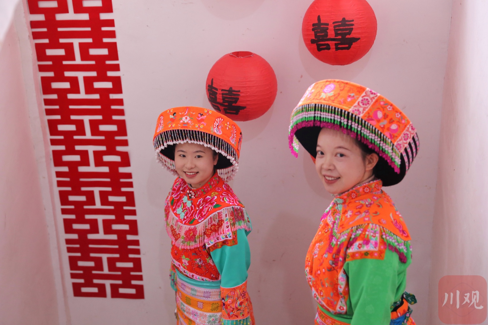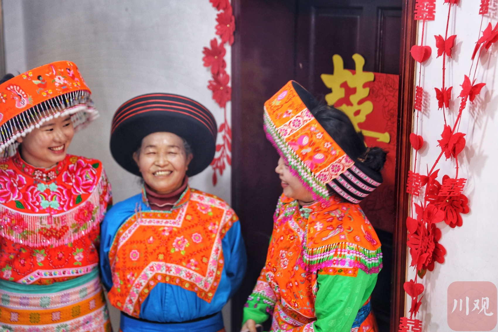 新娘的嫂子马艳梅和妹妹陶艳,也身穿苗服送陶倩出嫁。