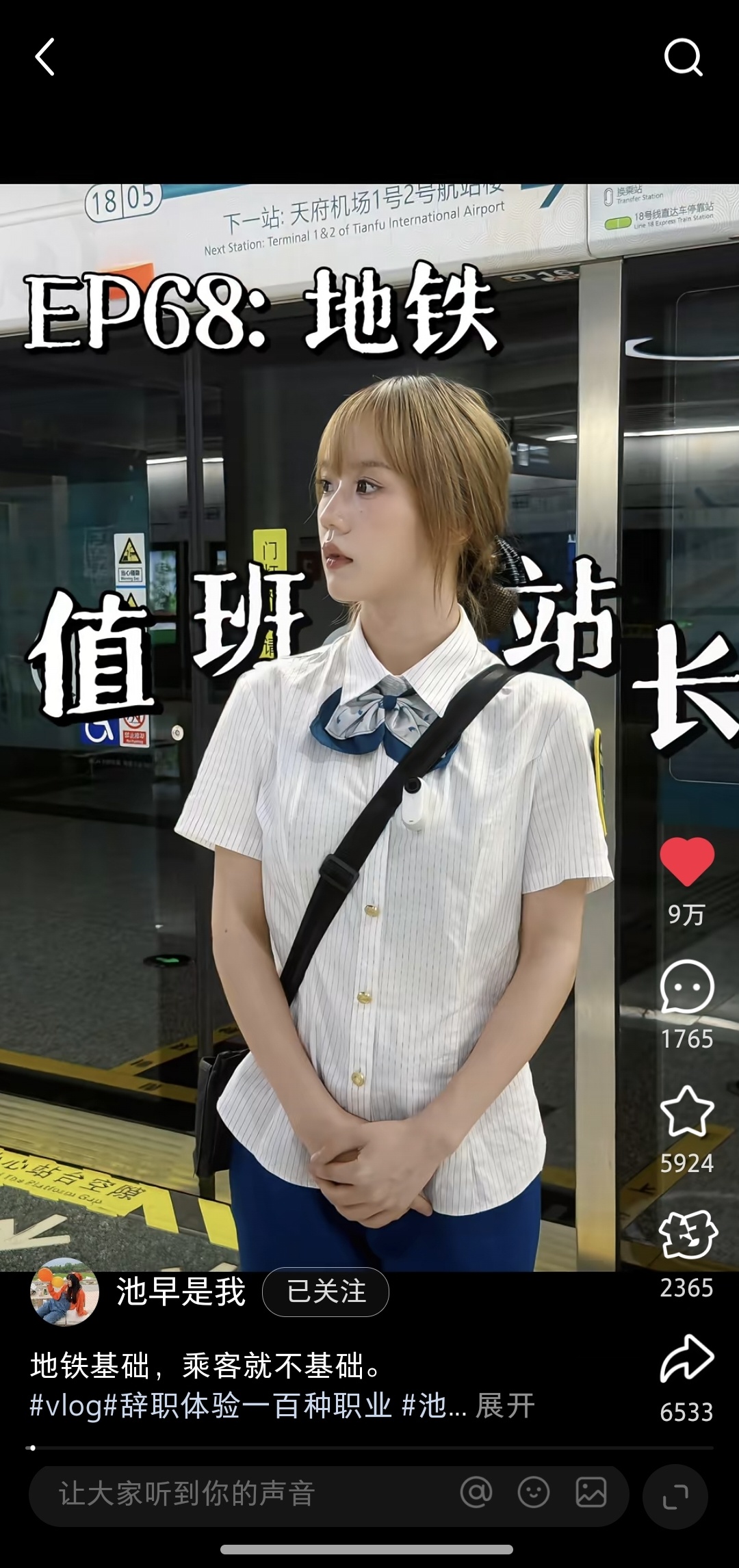 体验成都地铁值班站长的视频,是她的爆款作品之一。“这个职业和大家的想象反差很大。”让她最震撼的,是夜晚闸门关闭后,庞大精密的地下网络从未停歇,各类工种仍在有条不紊地运转。那一天,她在车站里足足走了三万多步。