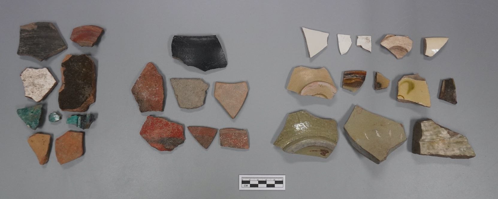 2019年曼泰港遗址发掘出土的中国瓷器、伊斯兰釉陶、印度陶器及本地陶器等遗物(右边一组为中国瓷器)