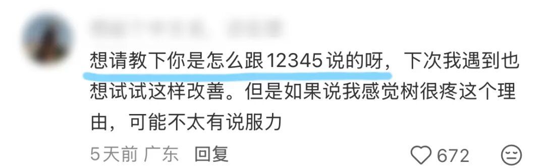 大家问“怎么跟12345说呢?如果说感觉树很疼这个理由,不太有说服力。”