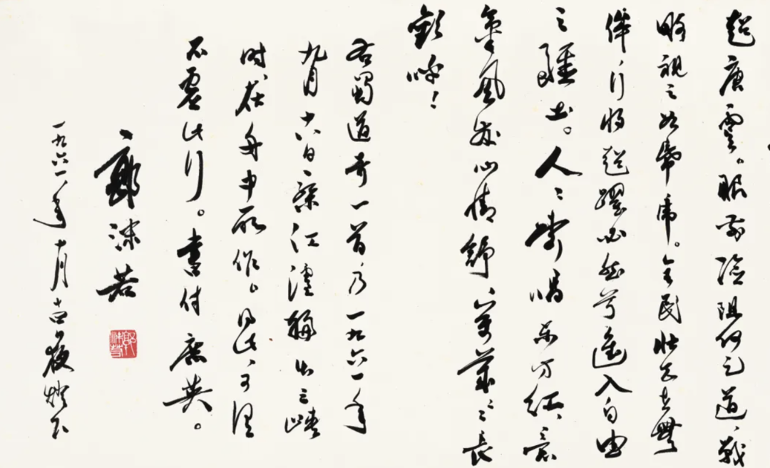 近日,郭沫若行草作品《蜀道奇》将现身拍卖会的消息受到收藏界关注。12月10日下午,北京市京都律师事务所发布《律师声明》称,该作品由郭沫若的女儿郭庶英所有,发现作品遗失后已向警方报案。要求拍卖委托方北京保利国际拍卖有限公司中止拍卖,返还作品。