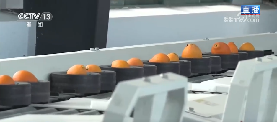 这段时间正好是当地柑橘品种红美人的丰收时节,在这里能特别直观地感受到,什么叫“沉甸甸的果实挂满枝头”。大家看这些果树,因为果实太重了,树枝都被压弯了,工作人员用绳子把枝条吊起来支撑住,避免枝条被压断。当然,这每一根被压弯的枝条背后都是乡亲们增收希望。整个园区的红美人年产量能超过500万斤,年总产值接近1亿元。