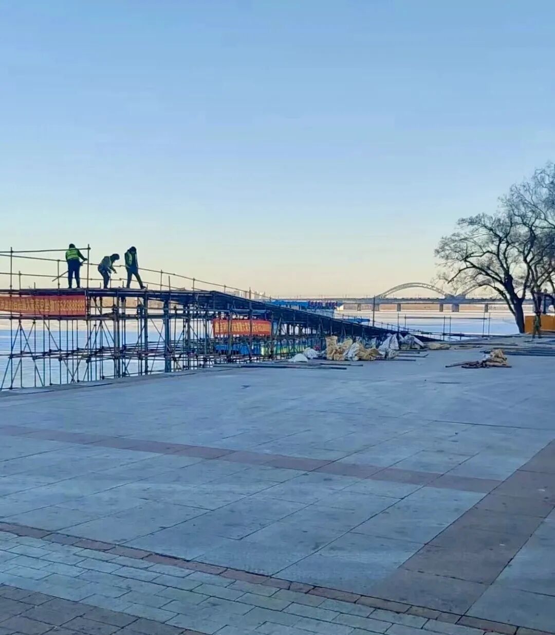 为保障游客安全,哈尔滨松花江冰雪嘉年华项目组自12月起每日定时监测实时温度与冰面厚度,排查清沟隐患,全力打造安全放心的冰雪互动环境。目前,园区各项建设工作稳步推进,向开园目标冲刺,届时,这座松花江上的冰雪娱乐景区将同广大市民游客一起共赴“热雪”沸腾的狂欢之约。