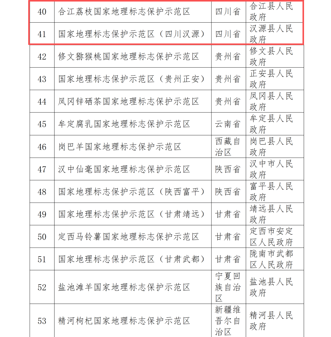 12月11日,记者从国家知识产权局网站获悉,经验收自查、验收评估、综合评定、社会公示等程序,国家知识产权局日前确定了小站稻等54个国家地理标志保护示范区(以下简称示范区),其中,合江荔枝国家地理标志保护示范区和国家地理标志保护示范区(四川汉源)入选。