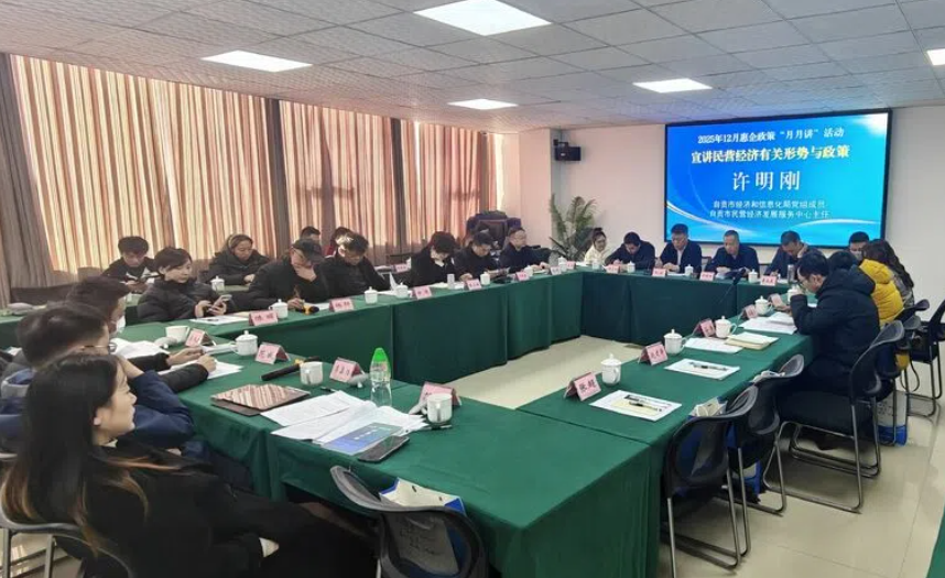 12月5日,自贡市2025年下半年民营经济发展服务“圆桌会”与惠企政策“月月讲”活动在“自己人”之家举行。30余位民营企业家、企业负责人及服务机构代表齐聚一堂,共话发展。