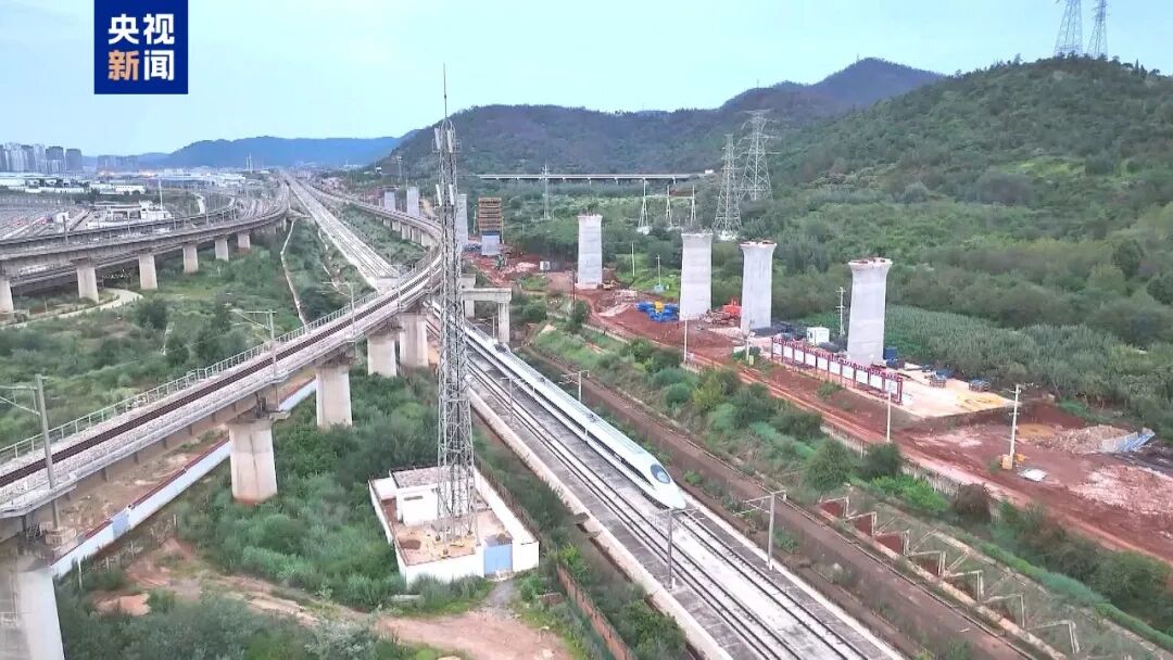 渝昆高铁全长约700公里,其中云南段长388.6公里,是云南省内首条时速350公里的高速铁路,全线建成通车后,重庆到昆明的行车时间将压缩至两个半小时左右,对推动沿线地区经济社会高质量发展具有重要意义。目前,渝昆高铁云南段建设全面进入冲刺阶段,每天投入1.4万余名施工人员、1500余台大型机械设备,全力推进无砟轨道施工和站后工程建设。