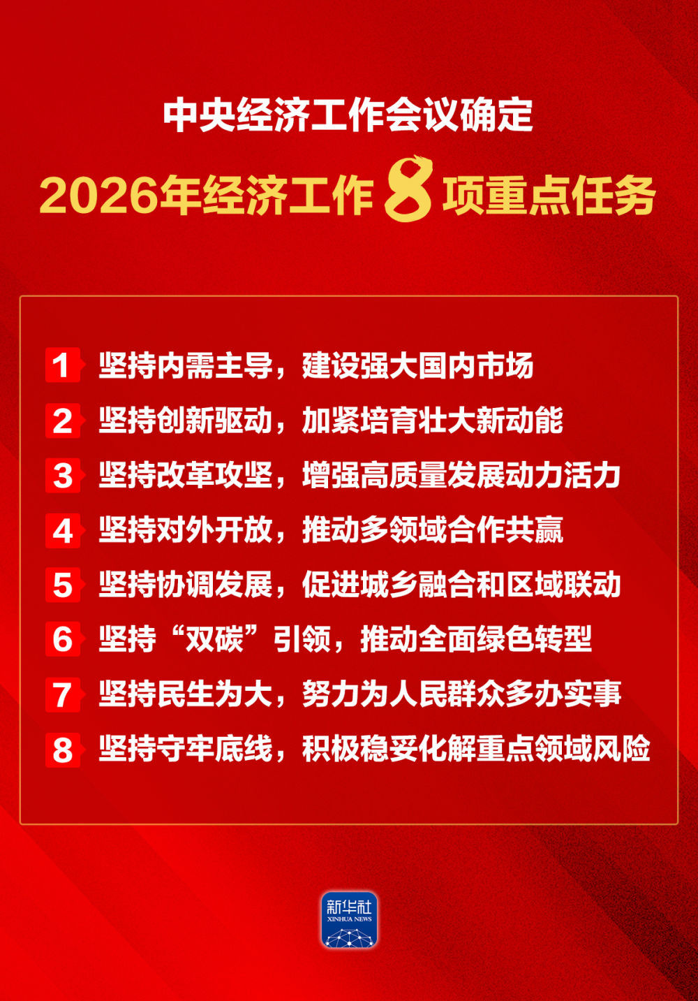 八个坚持,就是8项重点任务,这个好记,大家一起好好干!干出明年经济工作实实在在、明明显显,共同交出满意答卷!