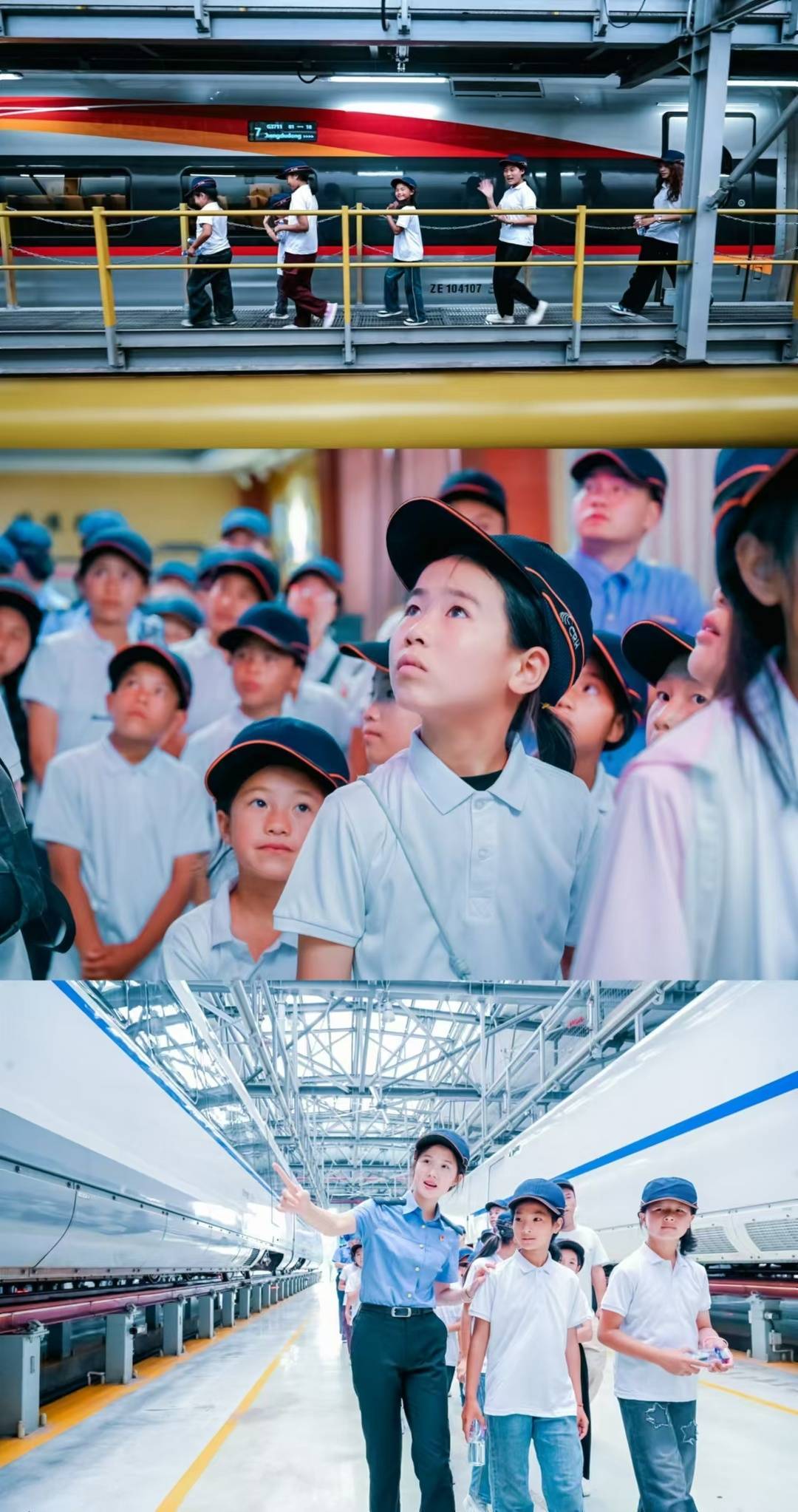 为了帮孩子们圆梦,2024年暑期,铁路部门组织了一场特别的研学活动,带着妞妞合唱团的孩子们坐着新成昆铁路复兴号列车来到成都,走进成都动车段参观最先进的复兴号智能动车组,了解动车检修过程。