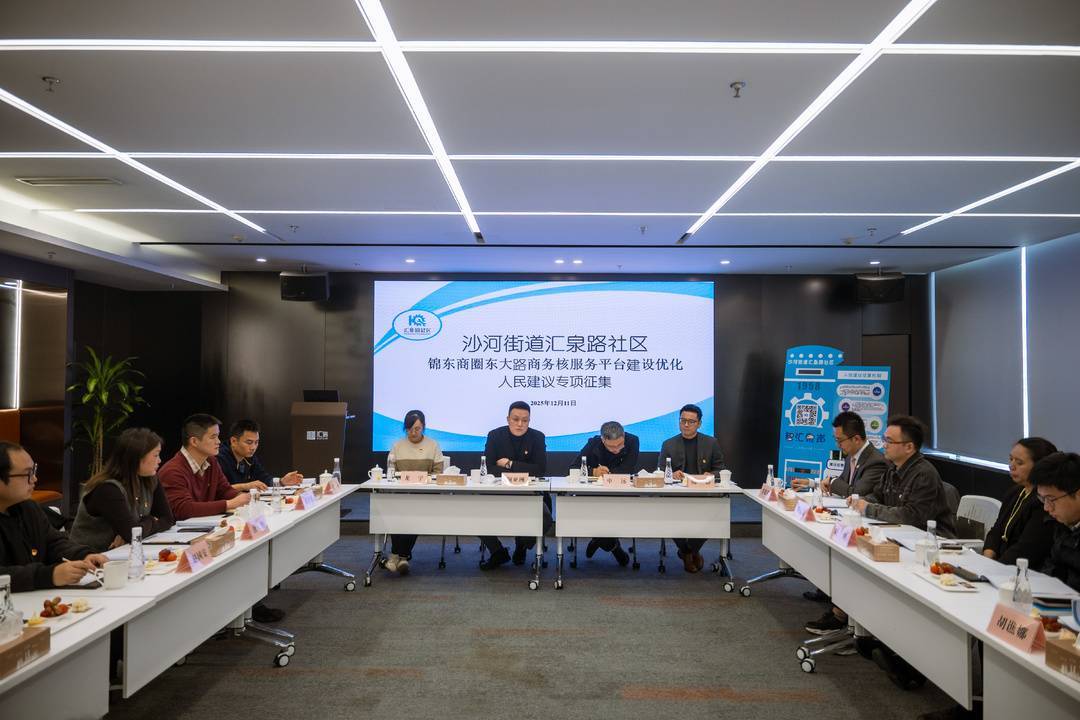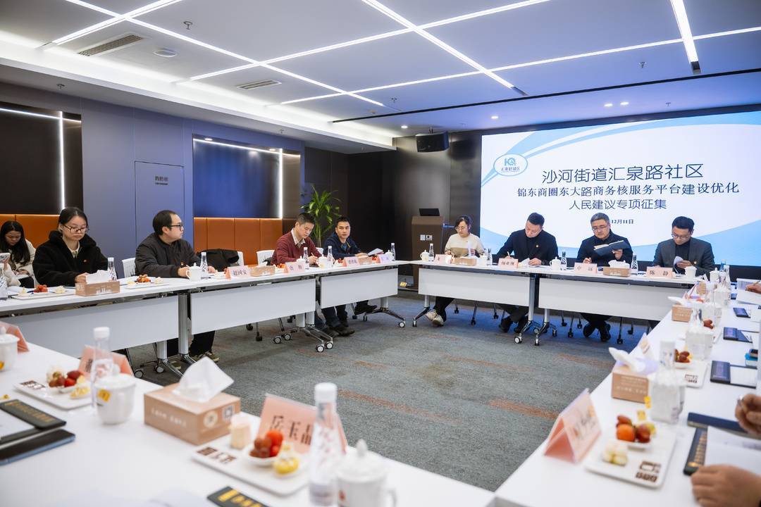为进一步凝聚“政企社”多方合力,以党建引领优化营商环境,助力锦东商圈东大路商务核综合党委提质增效,服务区域高质量发展,12月11日上午,成都市锦江区沙河街道汇泉路社区在汇信楼宇党群服务中心,组织召开“锦东商圈东大路商务核服务平台建设优化人民建议专项征集”活动。区级相关部门、街道职能科室、特邀建议人、两代表一委员与辖区企业单位代表共同参加。