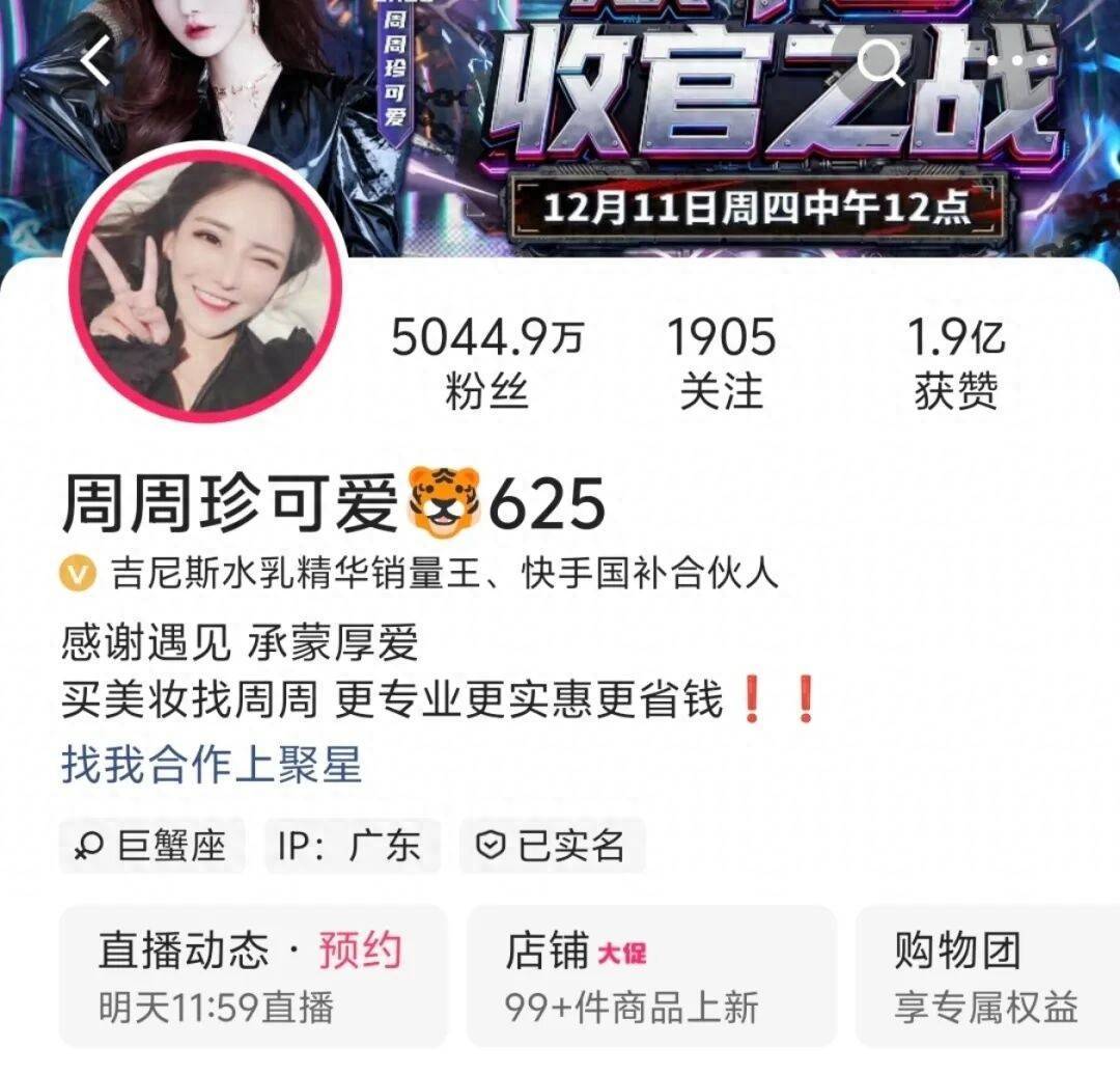 封面新闻记者查询发现,“周周珍可爱625”在该平台拥有5044.7万粉丝,在另一短视频平台还拥有超500万粉丝。其店铺位列平台面部护肤店铺榜第5名,近期销量超过99%的同行,近7天热卖商品超10万件。