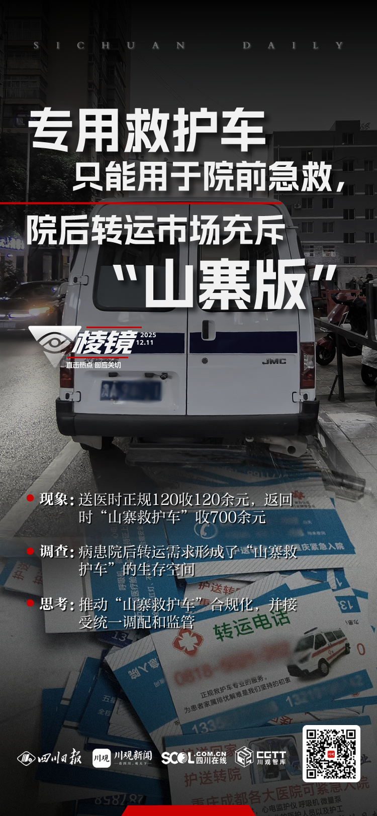 受限于政策限制及现实困难,医院专用救护车难以开展院后转运,患者如何转院就诊、离院回家,巨大的市场需求如何满足?政策监管如何跟上?川观新闻将持续关注。