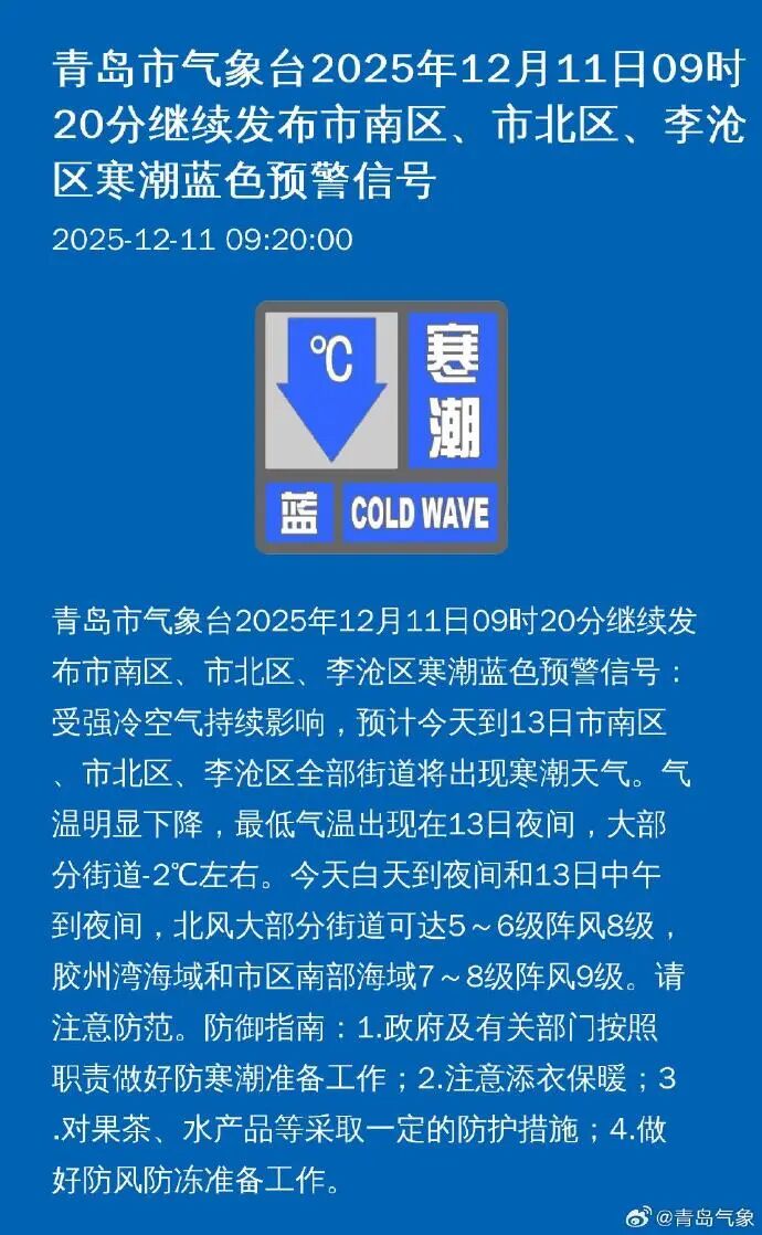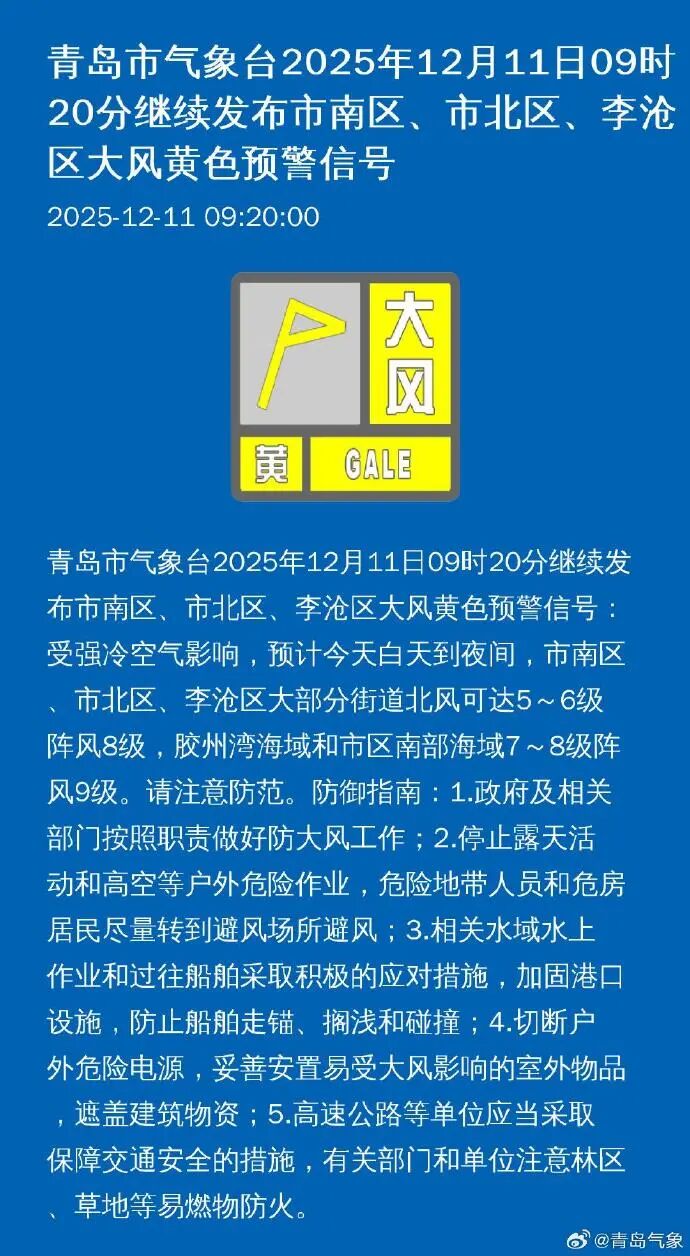 【青岛市区】今天白天,晴间多云,北风5到6级阵风8级,今天夜间,多云,北风4到5级阵风7级转3到4级,今天最高气温6℃,最低气温-2℃,相对湿度30%-90%。